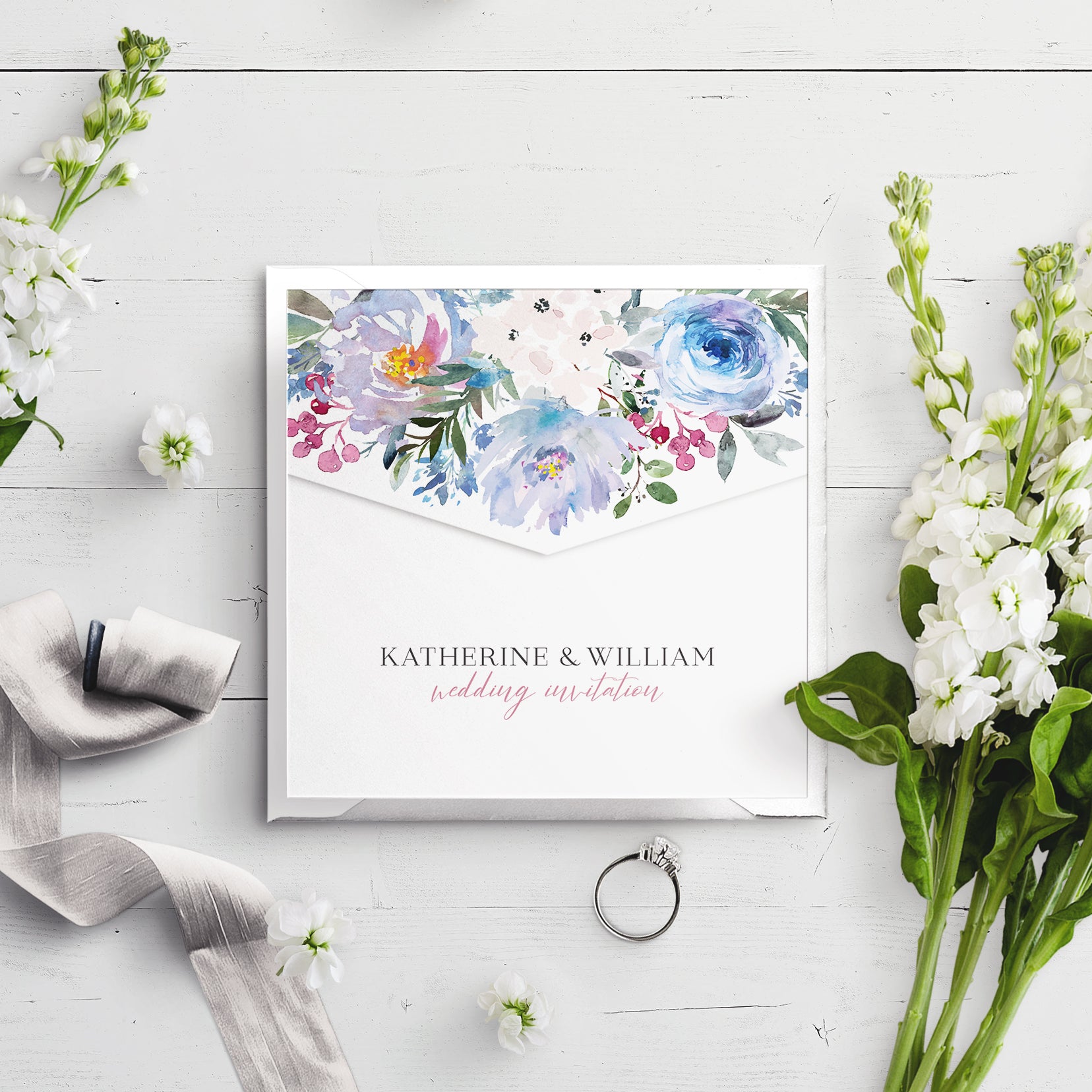 Envelope Fold A5 Invitation - Ainsley Floral